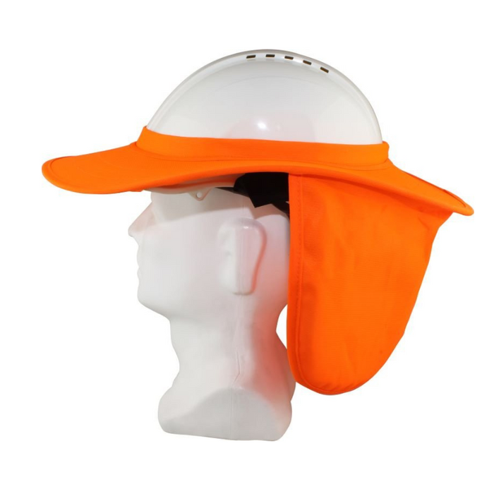 DESCRIPTION: Maxisafe Hard Hat Brim with Neck Flap. Durable cotton construction. Neck flap affords protects from the sun. Also availiable to order in other colours: [W: White] [Y: Yellow] [N: Navy Blue] [G: Green] [O: Orange]