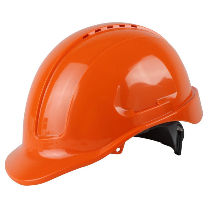 DESCRIPTION: Maxisafe Vented Hard Hat - Ratchet Harness. The Maxisafe Vented Hard Hat provides head protection that conforms to Australian Safety Standards. A full range of PPE accessories are also available to compliment the helmets including earmuffs, face shields, chinstraps, sweatbands and logo printing. FEATURES: AS/NZS 1801:1997 BSI Group Certified BMP 740955. Lockable single hand ratchet adjustment for easy, secure fitting. 6 point webbed harness & cradle system. 10 ventilation points for increased airflow. Lightweight, streamlined design. UV and impact resistant ABS material. Attachment slot fits most brands of earmuffs. Replaceable sweatband for user comfort. Expiry: 3 years from the date of first use (2 years for harnesses) AVAIL TO ORDER IN VARIOUS COLOURS: [Blue -B] [Fluro Yellow - FY] [Dark Green -G] [Orange -O] [Pink -P] [Red -R] [White -W] [Yellow -Y]