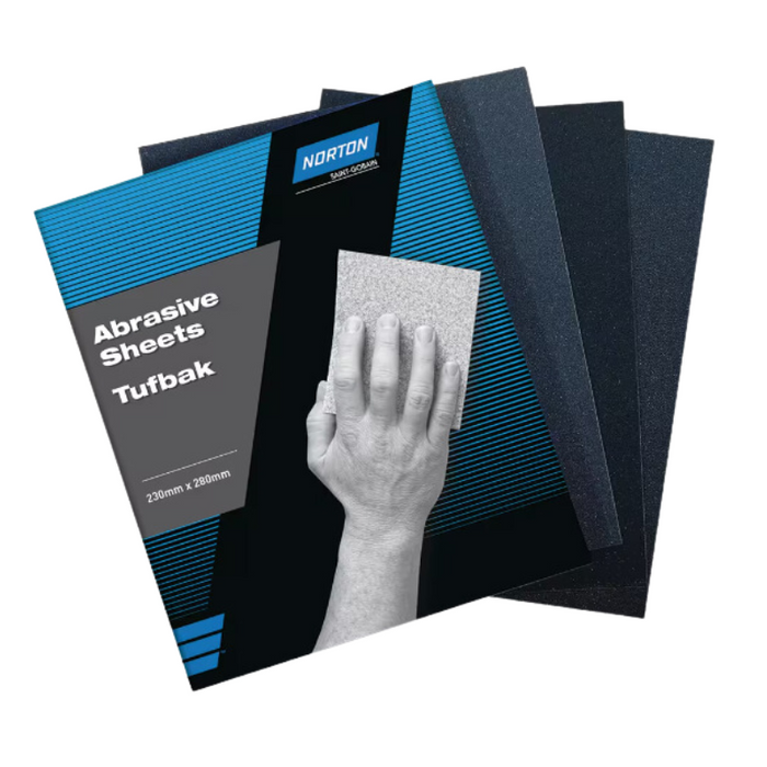 DESCRIPTION: Norton Tufbak 78072712896 T419 Wet And Dry Paper Sheet - 230 X 280mm - 1500 Grit FEATURES: Wet&Dry Sandpaper Provides high quality finish. Lightweight paper backing with high latex concentration -High water resistance. Silicon Carbide Angular Grain - High removal power due to angular grain structure. For hand sanding applications - Strong resin bond for longer life in wet applications. Perfect for sanding metals, automotive finishes and for sanding between coats of interior house