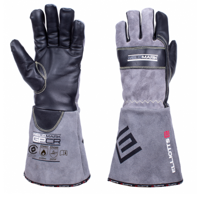 DESCRIPTION: The WeldMark® GPCR is a premium professional welder glove with TIG-like dexterity and MIG-like protection combined with a highly cut-resistant liner. The glove has been designed with Dynamax 265 Cut 5/TDM F material, offering full 360° cut protection with the highest dual standard cut resistance performance. FEATURES: Premium soft, highly durable goatskin palm for extra sensitivity and touch. Keystone thumb design provides high levels of comfort and dexterity. Cow split leather cuff. 360° Cut Protection - The Dynamax 265 liner offers Cut 5/TDM F highest dual standard cut resistance performance. Sewn in heat-resistant aramid thread for extra durability. Length: 390mm. SIZES: Avail to order in Medium/Large/XLarge/2XLarge