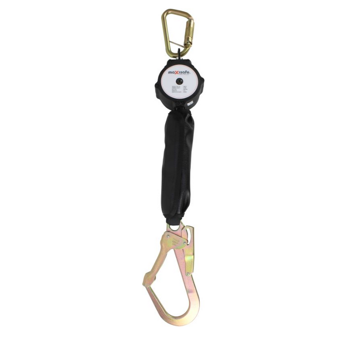 DESCRIPTION: Maxisafe Self Retractable 2M lanyard. Ergonomic, easy to use and is ideal for direct connection to most harnesses. It is virtually unnoticeable on your back, stays out of the way & can be easily used as a lanyard replacement. Whether your application requires single or twin leg configurations, mounting to an overhead anchor or for connection directly to harness, Maxisafe's Self Retractable Lanyard comes with all the possible connections for you to choose as per your suitability. Locks quickly - stopping a fall within inches - providing more protection at low heights. Also, the tension is always kept on the lifeline, which reduces snapping, dragging & trip falls. Fall Distance is minimal as compared to Energy Absorbing Lanyards, hence rescue/retrieval of user is easier. FEATURES: Inbuilt Energy Absorber will reduce the forces of fall to less than 4kN. Extremely lightweight - less than 600gms excluding hook and karabiner. Supplied with 1 x Triple Action Karabiner with Captive Pin and 1 x Aluminium Hook with Anti-Theft Screws. Webbing made from Technora. Meets the sharp Edge Test and passes the Dynamic Test of Fall Factor 2, hence can be used safely over sharp edges. 2 Metres of Retractable Webbing provides the continuous fall protection without any obstacles - keeps lifeline our of the worker's way, reducing snagging and tripping hazard. Inbuilt textile Energy Absorber for shock absorption. Minimum Breaking strength: 15kN. High Strength Polymer casing provides maximum durability. Conforms to EN360:2002 & Dynamic Requirement of EN355:2002. Can be used horizontally
