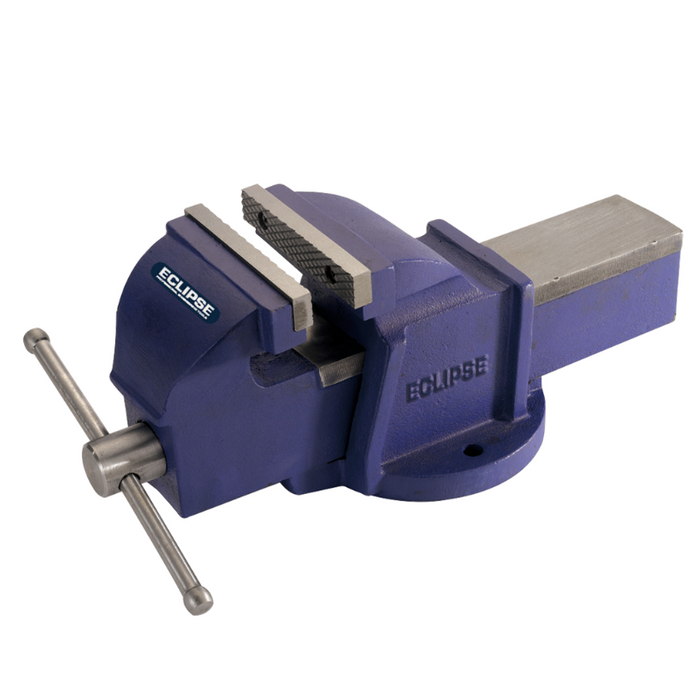 DESCRIPTION: Vice Engineers 125mm [Eclipse] SPECIFICATIONS: Jaw Width 125mm. Throat Depth 73mm. Opening 136mm. Clamping Force 2500kgf FEATURES & BENEFITS: High Quality Grey Cast Iron Body & Sliding Jaws. Hardened Steel Replacable Jaw Plates. Fixing Hole for Bench Mounting. Precision Milled Slide. Tommy Bar Will Bend before Vice is Over-Stressed [Also Avail- Jaw Plates & Screws to suit EC-EMV5: EC-EMV-5JPS + Fibre Soft Jaws suIt EC-EMV5: EC-EFG5 + Swivel Base Plate to suit EC-EMV5: EC-EMV-SB5]
