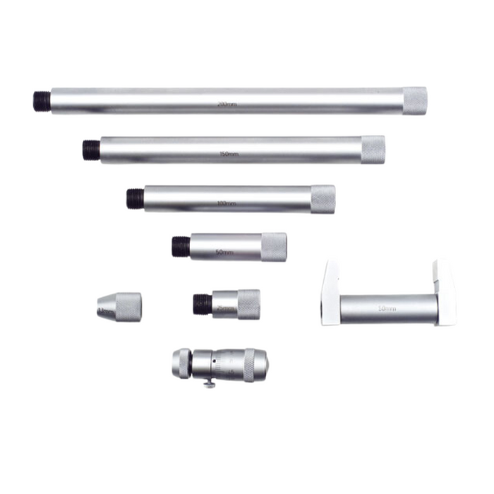 DESCRIPTION: Tubuar Inside Micrometer 50-600mm. Range 50-600mm.Resolution 0.01mm. [Moore & Wright] FEATURES & BENEFITS: deal for large diameters. With tungsten carbide measuring faces. All measured faces are micro lapped. Satin chrome scale and body with lock screw. All extension pieces equipped with gauge parts are under constant spring loading. Packed in wooden box.
