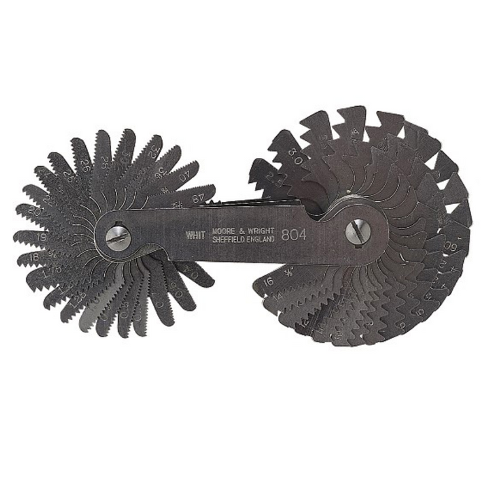 DESCRIPTION: Imperial Screw Pitch Gauge - 800 Series - 28 Blades [Moore & Wright] SPECIFICATIONS: Screw pitch: Whitworth