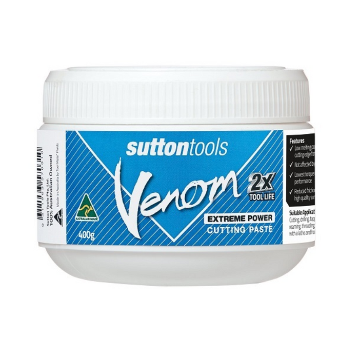 DESCRIPTION: Sutton Tools Venom Cutting Paste FEATURES:Sutton Tools Venom Cutting Paste is a high-performance low melting point lubricant specifically designed to adhere to the cutting edges, even when using additional coolants.