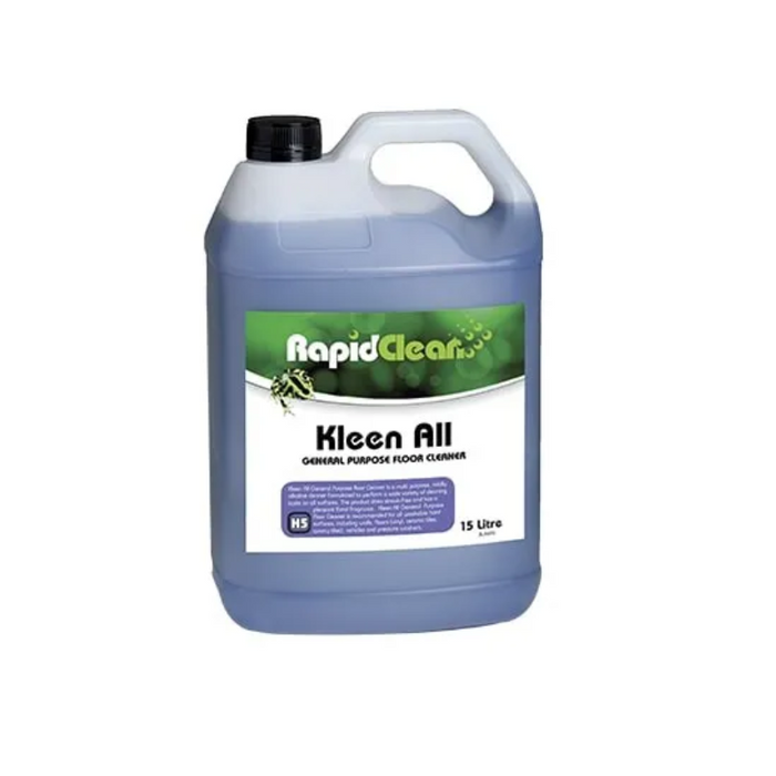DESCRIPTION: Kleen All – General Purpose Floor Cleaner 5LT. Kleen All is a multi-purpose cleaner that is formulated to perform a wide variety of cleaning tasks on all surfaces. It is a mild degreaser with a PH of 9. Kleen All has a pleasant floral fragrance and dries streak-free