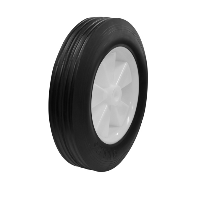 DESCRIPTION: 200mm Rubber Tyred Nylon Centred Wheel | 1/2" Axle Diameter | Wheel Diameter (mm): 200 | Tyre Width (mm):42 | Boss Width (mm): 37 | Axle Diameter: 1/2 inch (12.7mm) | Wheel Bearing Type: Plain Bore | Maximum Load Capacity (kg): 50