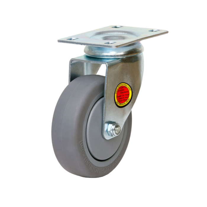 DESCRIPTION: 75mm Inst Rubber Wheel 80kg Capacity - Swivel Castor | Wheel Diameter (mm): 75 | Frame Type: Swivel with Brake | Wheel Width (mm): 32 | Wheel Type: Institutional Rubber | Wheel Bearing Type: Ball Bearing | Castor Height (mm): 108 | Swivel Radius (mm): 71 | Maximum Load Capacity (kg): 80