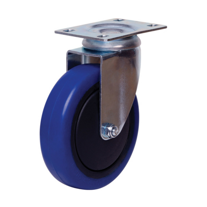 DESCRIPTION: 125mm Reb Rubber Swivel Light Industrial Castor | Wheel Diameter (mm): 125 | Frame Type: Swivel | Wheel Width (mm): 32 | Wheel Type: Rebound Rubber | Wheel Bearing Type: Ball Bearing | Castor Height (mm): 160 | Swivel Radius (mm): 100 | Maximum Load Capacity (kg): 100