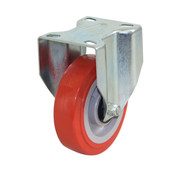 DESCRIPTION: 125mm Polyurethane Tyre on Nylon Centre Wheel 200kg Capacity - Rigid Castor (R5045) | Wheel Diameter (mm): 125 | Frame Type: Rigid | Wheel Width (mm): 35 | Wheel Type: Polyurethane Tyred Nylon Centred | [Replacement Wheel Code: PU5508] | Wheel Bearing Type: Roller Bearing | Castor Height (mm): 157 | Maximum Load Capacity (kg): 200 | Recommended Load Capacity (kg): 150