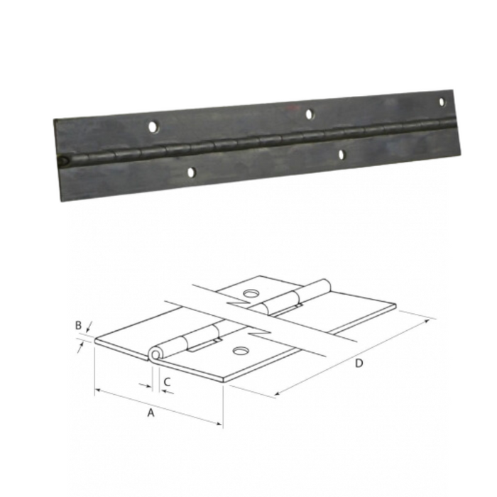 DESCRIPTION:OCCO Hinge (Pre-Drilled 5mm Holes) 304 Stainless Steel 38 x 1.5 x 5 x 1200mm | 304 Stainless Steel Hinge & Pin | Pre-Drilled 5mm Holes | Length (D): 1200 | Open Width(A): 38 | Mat Thickness(B): 1.5 | Pin Dia(C): 5