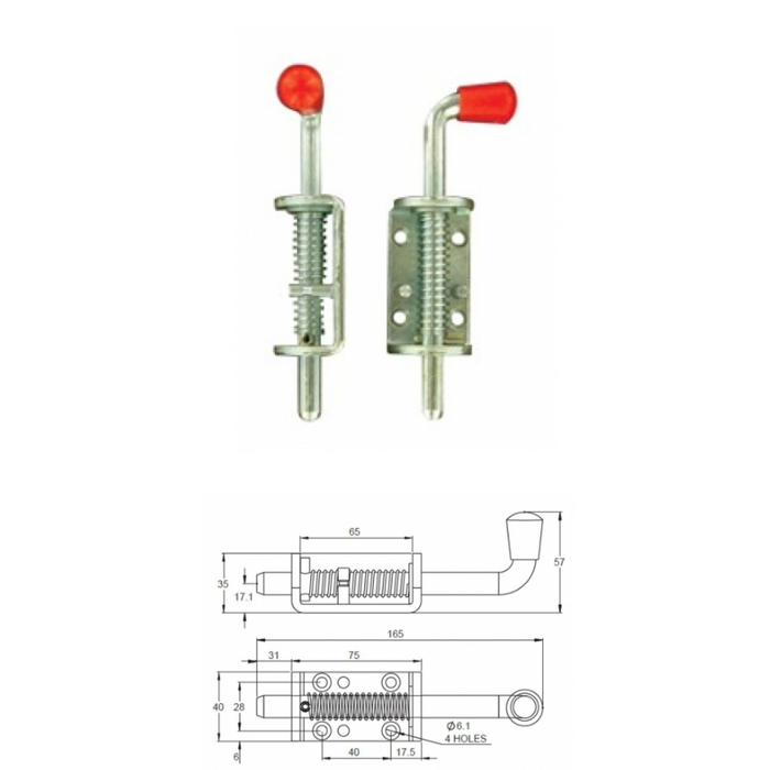DESCRIPTION: Spring Loaded Red Knob Shot Bolt | 12.7mm shaft size will easily accommodate any 13mm or 1/2" drilled hole | Zinc Plated