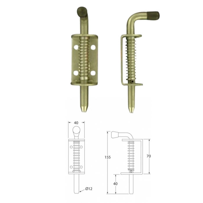 Shot Bolt Spring Loaded 12mm 316 S/S