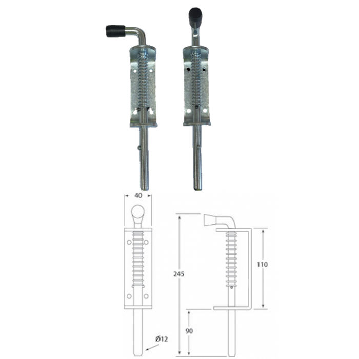 DESCRIPTION: Spring Loaded Shot Bolt Zinc Plated Steel with 12mm Shaft