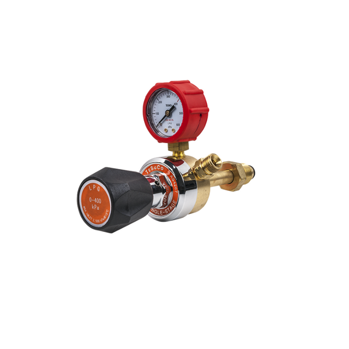 DESCRIPTION: Regulator 1 Stage Rear Entry | LpG/Air Type 21 3/8 Outlet | In 20,000kPa Out 400kPa FEATURES: The regulator is made from solid brass and it is compact in size to fit small cylinders. The outlet pressure is adjustable to 400 kPa with a maximum flowrate of 6 kg/h.