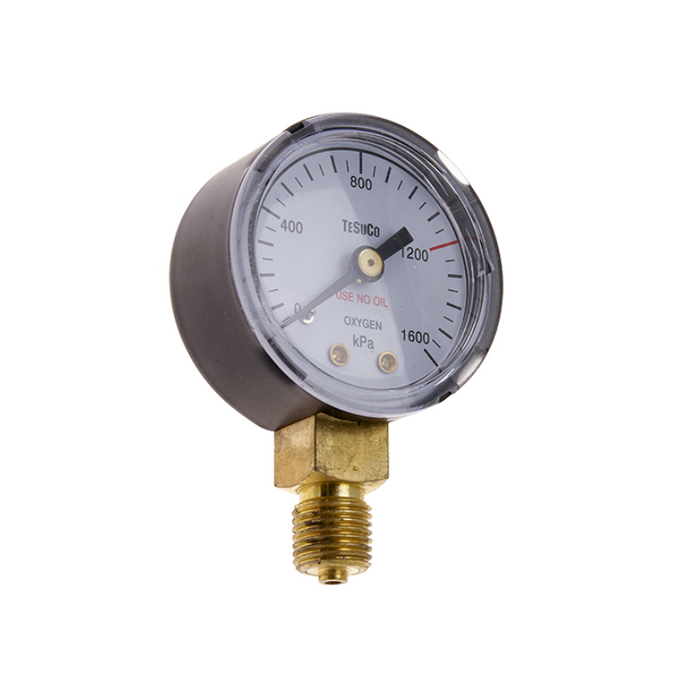 DESCRIPTION: Pressure Gauge | 0 - 1,600 kPa Oxygen | 1/4" BSPP For RC- Regulators