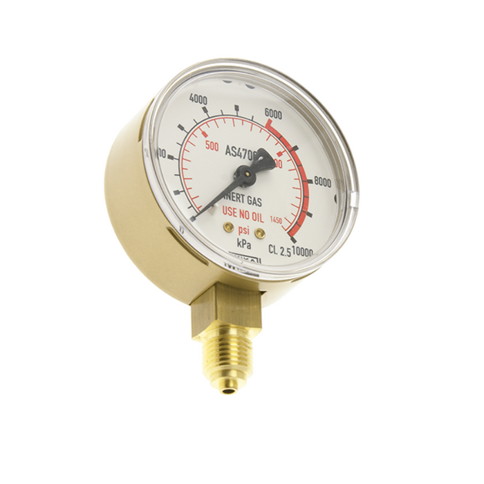 DESCRIPTION: Nitrogen 6,000 kPa Regulator | Pressure Gauge 63mm 10,000kPa | Dual Scale kPa/PSI 1/4 BSP | For RI1SNI60 Regulator