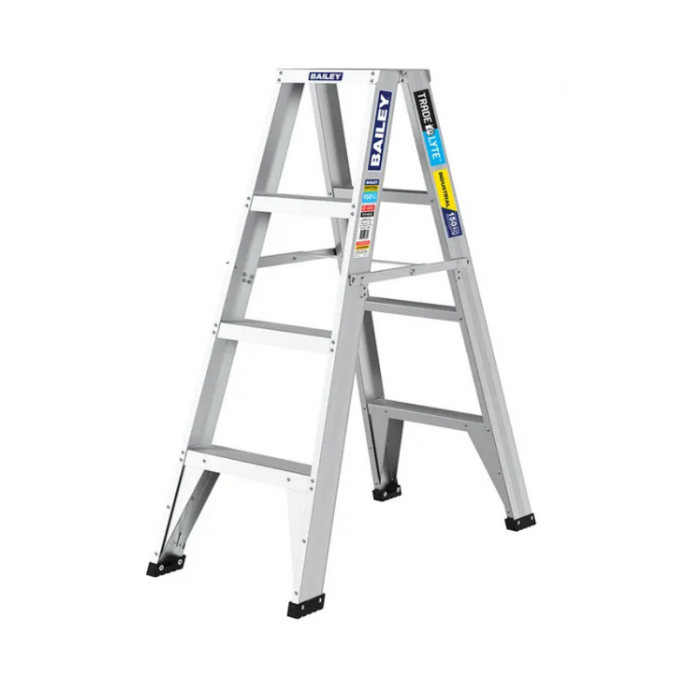 DESCRIPTION: Bailey 1.2m 150kg Trade Lyte Aluminium Double Sided Step Ladder FS14020. Double Riveted Construction for Increased Strength