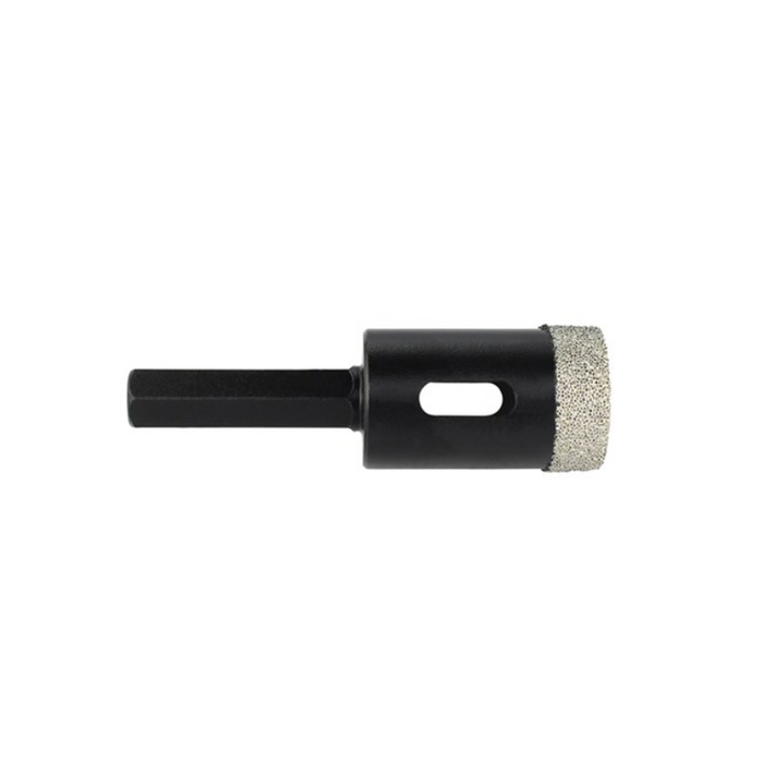 DESCRIPTION: ALPHA 25mm Diamond Core Bits FEATURES: Slotted design for increased visibility while cutting and fast plug removal | 5x Life: Diamond coated design reduces cutting temperature for 5x longer working life | Vacuum brazed diamond tip
