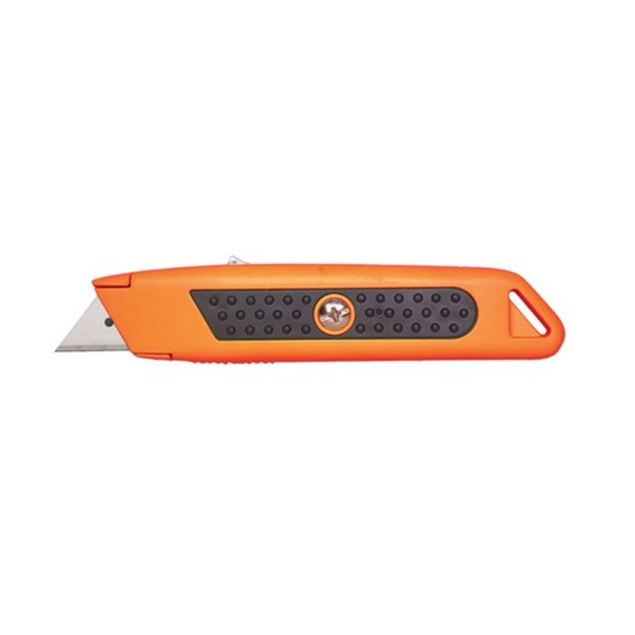 DESCRIPTION; Auto-Retracting Orange Safety Knife with Rubber Grip