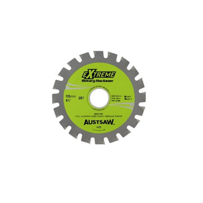 DESCRIPTION: Austsaw - 115mm (4.5in) Rotary Hacksaw Blade - 22.2mm Bore - 20 Teeth