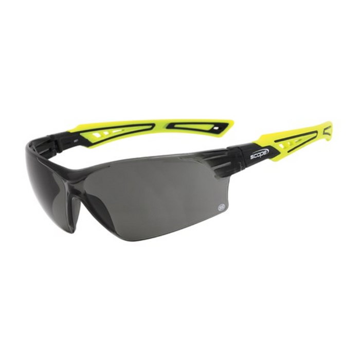 DESCRIPTION: Bionix Hi Vis Green/Black Temple Titanium AF/AS Smoke Lens FEATURES: The BIONIX has an innovative, modern and distinctive design that was created with optimal protection in mind. The ultra-wraparound one-piece polycarbonate lens offers superior coverage with brilliant optical clarity and an unobstructed wide field of view. With flexible co-injected thermoplastic rubber temples and an inbuilt nose bridge, this high-grade gear provides excellent wearability and guarantees optimal eye defence at all times. | STANDARD: AS/NZS 1337.1 : 2010 + Additional Standards: ANSI Z87.1+ | FIT: Medium-Large | Certified: SAI Global Lic 40234 | Lens Coating: Titanium Anti-Fog/Anti-Scratch [SOLD as EACH | 10 Each Per Carton] [AVAIL in GRN/BLK Clear: SAF860HVC & GRN/BLK Smoke: SAF860HVS]