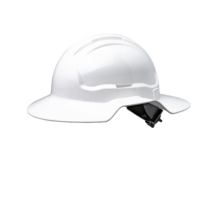 DESCRIPTION: This design includes greater protection from the elements including a 60% increase in brim area and 30% more protection, compared to current broad brim designs and 300% more brim area than a standard peak cap. The new Broad Brim hard hat has a unique removable access tab to allow for cap attachable helmet ear muffs. These tabs can be parked in the rear of the hard hat to prevent loss. FEATURES: Certified Australian design & manufacture for trusted & reliable head protection | Type 1 high impact rated ABS is extra strong and robust yet light-weight, ideal for all working conditions | Unique 360° Broad Brim design provides maximum sun and rain protection | The improved modern design of the attachment slot allows the Broad Brim helmet to accept most 25mm and 30mm attachments in the marketplace (cap attachable earmuffs) | Patented slide and store insert system for Maxisafe cap mount earmuff attachment | Ratchet wheel for one handed fit adjustment | Premium 6 point terylene harness ensures comfort and cushioning | Logo printing available in multiple colours and positions (MOQ apply) | Certified to Australian Standards AS/NZS 1801:1997 | Expiry: 3 years from the date of first use (2 years for harnesses)