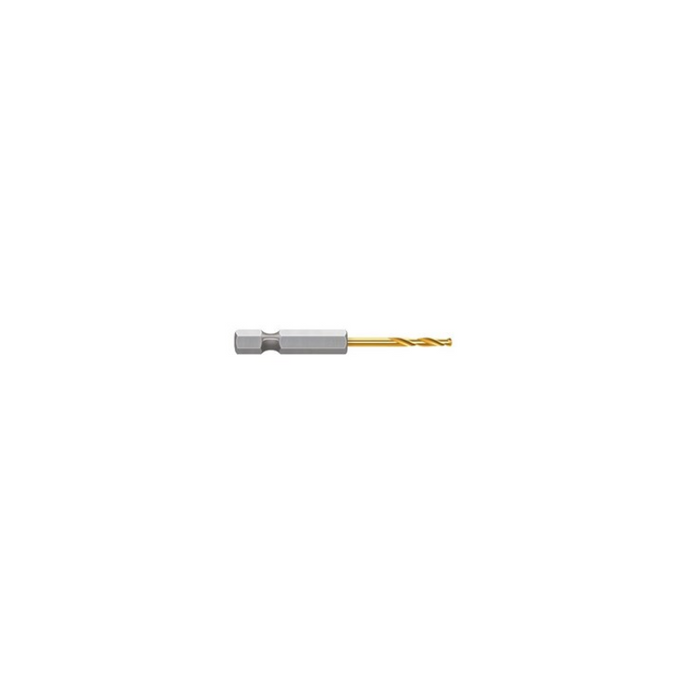 DESCRIPTION: 2.5mm Hex Shank Quick Release Drill Bit - Gold Series FEATURES: 30% More Holes* |Suitable for IMPACT DRIVERS & CORDLESS DRILLS | 1/4 QUICK CHANGE | Titanium nitride coating reduces heat & increases lubricity for extended life | 135° Split Point cuts faster & reduces wandering