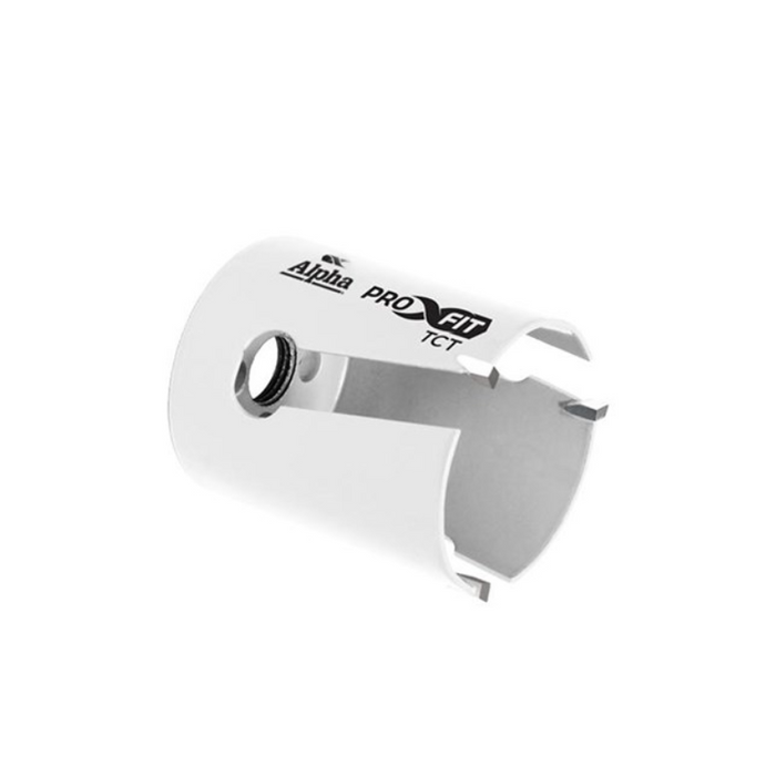 DESCRIPTION: 38mm TCT Multi-Purpose Holesaw FEATURES: Cuts up to 5 times faster / Ideal for wood, pressed wood products, particle-board, ceramic materials like wall tiles, plastic and soft stone material | Alpha PROFIT TCT holesaws are fast and clean cutting, suitable for drilling wood, particle board, plywood, ceramic materials like wall tiles, fibre cement sheeting, plastic, aluminium, soft stone materials and plasterboard | Deep slots for easy slug removal and fast chip clearance | Premium quality brazed tungsten carbide teeth | 60mm cutting depth. [Available in sizes from 16.0mm - 152.0mm]