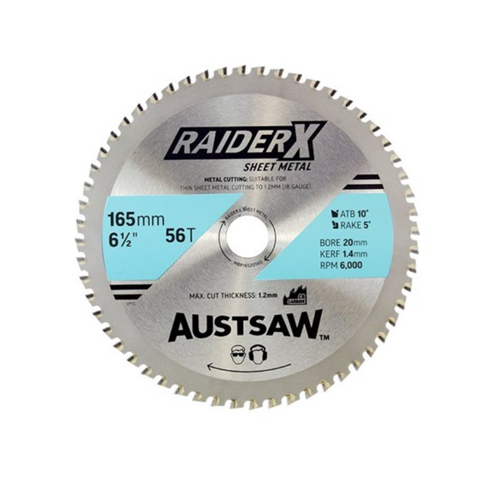DESCRIPTION: Austsaw RaiderX Sheet Metal Blade 165mm x 20 x 56T TCT