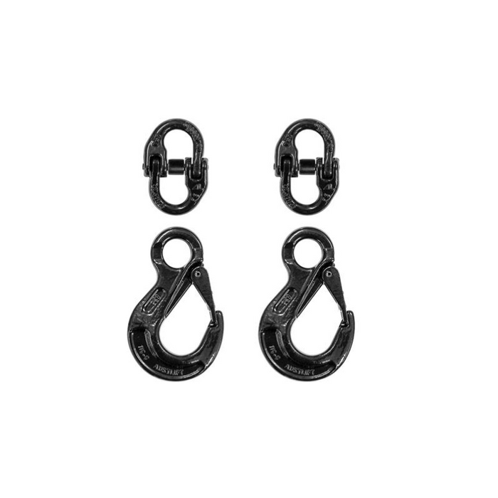Description: CTA APPROVED - 6mm Kit: Suitable for 8mm Trailer Chain - Capacity: 2 Tonne - Break Force: 4.4 Tonne. | Black - Zinc Nickle Plated Latches