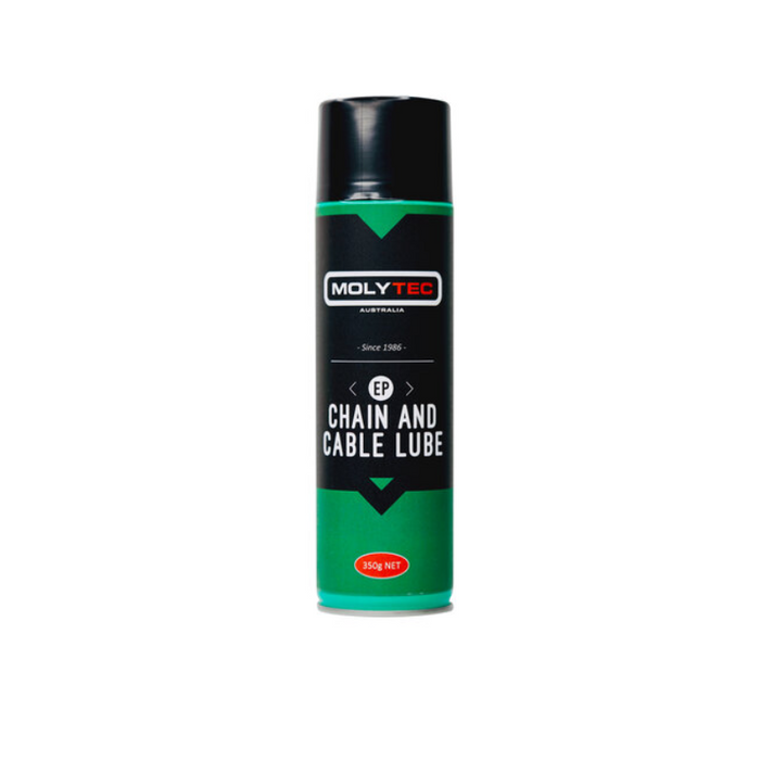 DESCRIPTION: Aerosol Lubricants - Chain & Cable Lube 350g Aerosol - Molybdenum Disulphide Based Lubricant FEATURES: A non - fling, water resistant, extreme pressure lubricant for protection on chains, linkages, cables, wire ropes, sprockets, open gears, hoists, conveyors, fork lifts, tractors, farm equipment and is highly recommended in marine and mining environments.