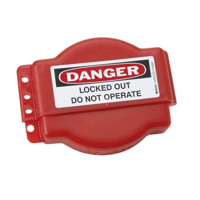 DESCRIPTION: Adjustable Gate Valve Lockout | Adjustable Gate Valve Lockout| Colour: Red | Valve Handle Diameter: 25mm - 165mm | Loto Device Sizes: 209 x 130 x 54.1 FEATURES: The durable polypropylene construction resists cracking and abrasion and can withstand temperatures from -20 degrees Celcius to 80 degrees Celcius | Designed to completely enclose the handle and prevent tampering | Device is compact for easy carrying and storage | Available in red or yellow | Labels included, also sold separately