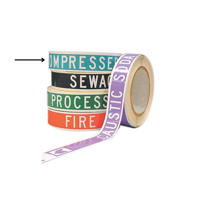 DESCRIPTION: Roll Form Pipemarker - Compressed Air H31mmx W380mm 50 Per Roll FEATURES: Roll Form Pipe Markers provide an economical solution for any pipe marking application. Markers come on a roll; paper backed and with perforated edges for easy flow indication.