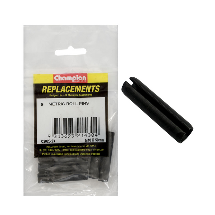 M10 x 50mm Roll Pins Metric High Carbon Spring Steel Black Oxide | Pack Size: 5