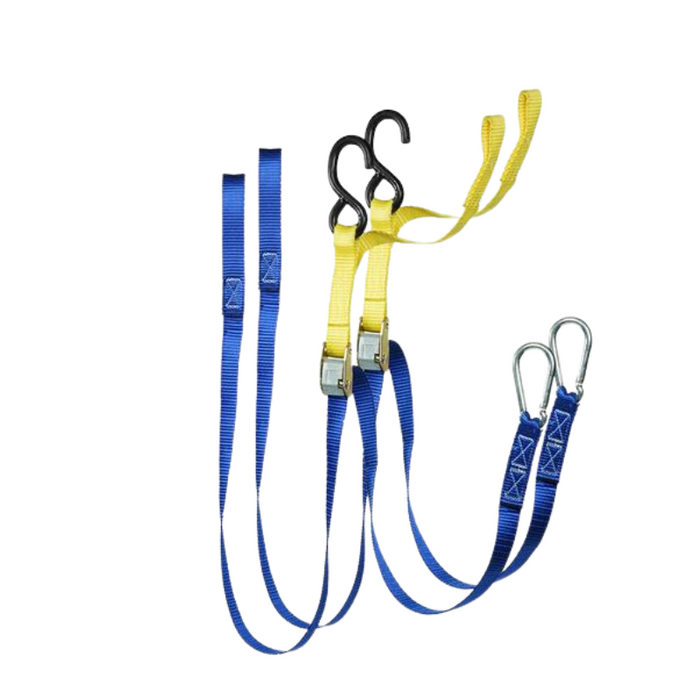 DESCRIPTION: Motor Bike Tie Down C/W Snap & S Hook (Pair) 25mm LC250KG FEATURES: Motorcycle cam buckle tie down assemblies are the complete lashing system purposely made for motorcycle lashing requirements.