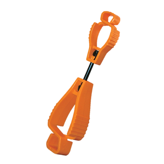 Features: Upper plastic jaw allows securing to belt loop / pocket, Lower plastic jaw allows gripping of gloves, Link arm designed to breakaway in the event of glove entanglement, Never misplace your gloves again.