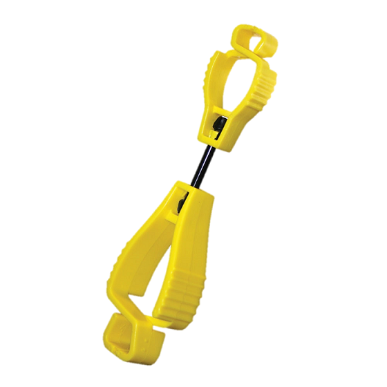 Features: Upper plastic jaw allows securing to belt loop / pocket, Lower plastic jaw allows gripping of gloves, Link arm designed to breakaway in the event of glove entanglement, Never misplace your gloves again.