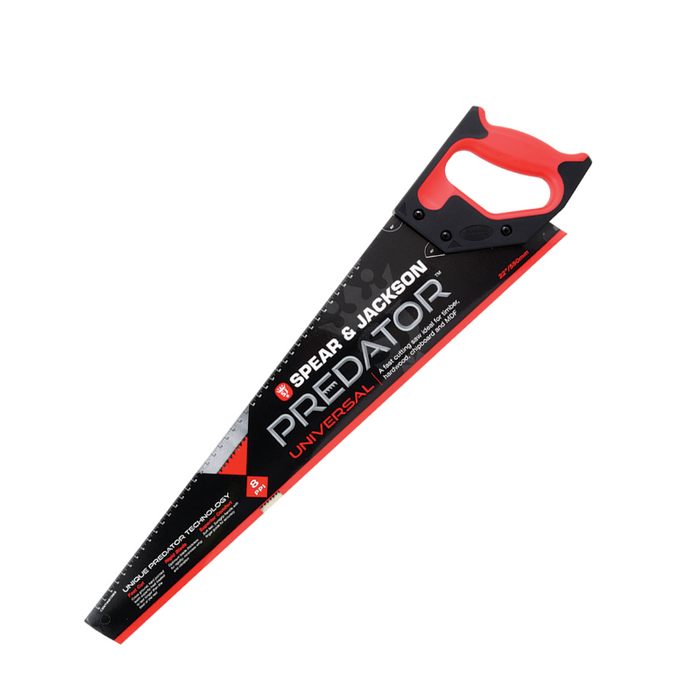 DECRIPTION: Hardpoint Saw Universal 550mm Blade Size 22" 550mm. FEATURES: Fast and Precise Cut with Push Pull Action both Along and Across the Grain. Rigid 0.91mm Blade Minimises Whip and Vibration. Soft Feel Ergonomic Grip and Finger Guide for Accuracy. Ideal for use with Timber, Hardboard, Chipboard and MDF. Medium / 8 PPI