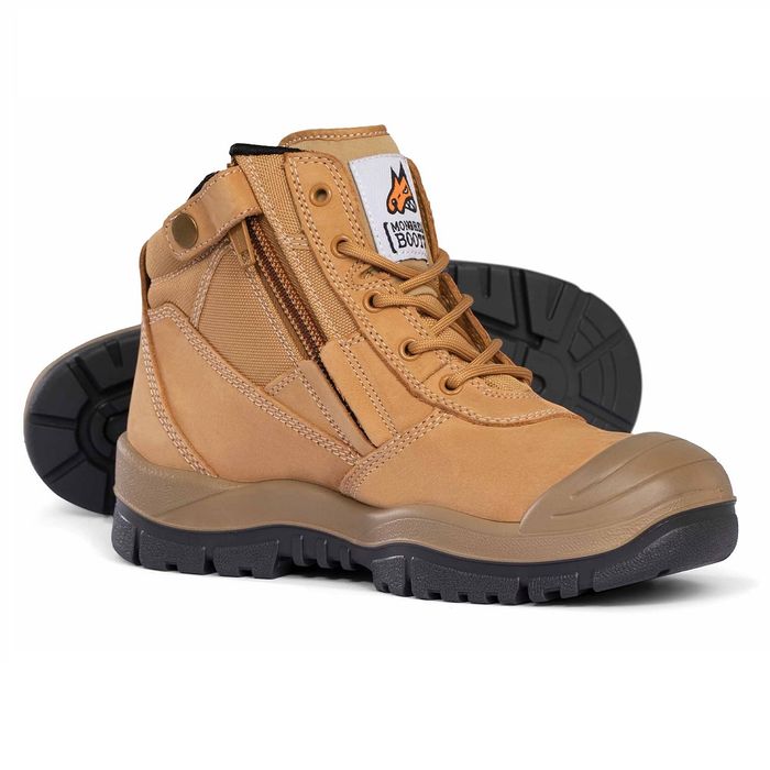 DESCRIPTION: 200J steel toe cap, Moulded PU scuff cap for longevity, YKK zipper w/ ZipGuard, AirZone Comfort System®, Electrical hazard resistant, Slip, oil & fat resistant TPU/PU ToughSider sole, OrthoTec Air footbed w/ anatomical arch support, Temperature regulating lining, Coats NylBond stitching, Padded tongue and collar, Premium nubuck leather.