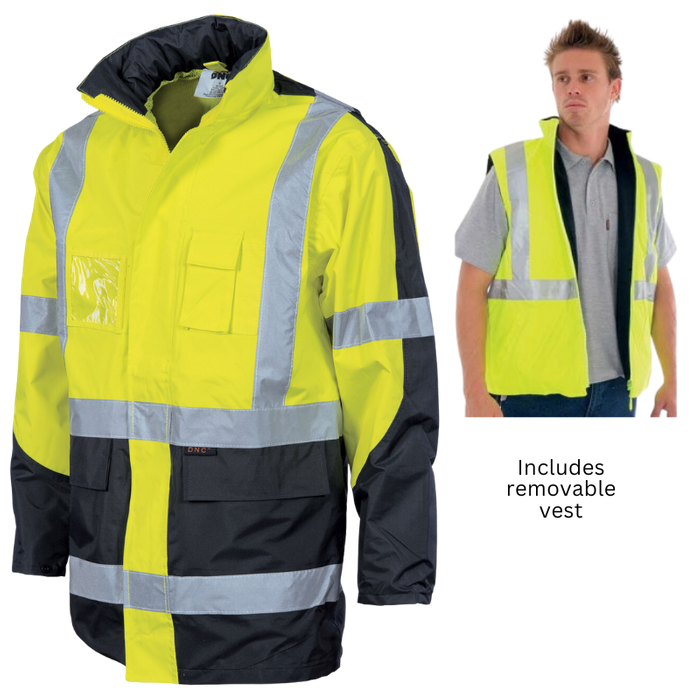 Jacket 4in1 Hi-Vis w/Vest Y/Navy - S