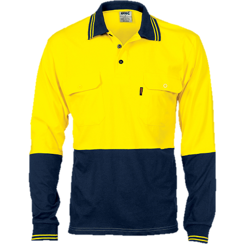Polo Shirt Hi-Vis Jersey L/S Y/Navy 2XL