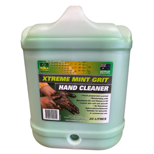 Koala's Xtreme Mint Grit Hand Cleaner contains environmentlly friendly abrasive beads for more efficient cleaning and is 100% soap free. This range of Hand Cleaner is fully biodegradable, safe to use - Non-Toxic and Non-Corrosive, to suit domestic or commercial use for removing grease, oils and other stains easily. With moisturising macadamia nut oil, Vitamin E and a peppermint scent these hand cleaners leave skin soft and smooth.
