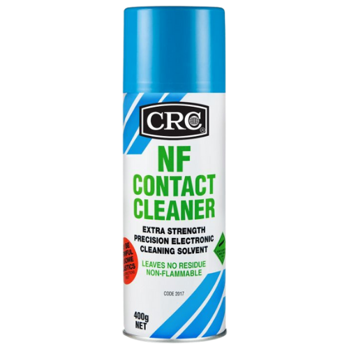 Description: CRC NF CONTACT CLEANER is a revolutionary, technically proven, stable, no flash point, and non-flammable, inert high purity cleaning solvent. Non- conductive, non-corrosive, non-staining, rapid complete evaporation and contains no lubricants. Applications: Recommended for cleaning relays, switches, circuit breakers, alarm and signal systems, printed circuit boards, connectors, generators, contacts, laboratory and test equipment, motor and motor controls, sensors, flux removal, terminals, plugs and jacks. Features: No flash point. Non-flammable. Fast evaporation, minimizes downtime associated with 'clean-in-place' cleaning methods. Residue free, prevents harmful build-up and eliminates rinsing or wiping. 360° Valve, ensures that all usable product is expelled from the can.