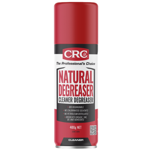 Description: CRC Natural Degreaser is a unique biodegradable heavy duty cleaner/degreaser that is extremely effective for dissolving and removing grease, oils, lubricants, adhesives and contaminants without requiring water wash off and without leaving a residue. CRC Natural Degreaser is non-corrosive, non-abrasive and non-staining. Applications: Recommended for the effective removal of grease, oil, corrosion and sludge from air tools, mechanical brakes, clutches, chains, wire rope, motors, dies, moulds, parts, bearings, generators and compressors. Features: Readily biodegradable per OECD 301B. Leaves no residue. Prevents harmful build up on equipment and eliminates wiping and rinsing. Minimises down time associated with clean in place cleaning methods. No Class l or ll ozone depleting chemicals.