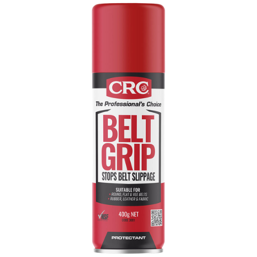 Description: CRC Belt Grip provides a temporary, synthetic treatment for worn belts that extends belt life by reducing slippage, hardening, glazing, dirt build-up and friction. CRC Belt Grip also helps eliminate annoying squeaks and squeals. Formulated with a tacky, non-drying, water-resistant polymer. CRC Belt Grip can be used on leather, rubber, canvas or fabric and is ideally suited for flat, round and V-belts. Applications: Recommended for industrial machinery, conveyor systems, portable motorised equipment and vehicle belts. Features: Tacky, non-drying film. Minimises drive belt slippage, resists water wash off, maintains belt flexibility and prevents loads from slipping on conveyor systems. Improves traction. Reduces belt tension relieving stress on motors, shafts and wheels for improved performance.