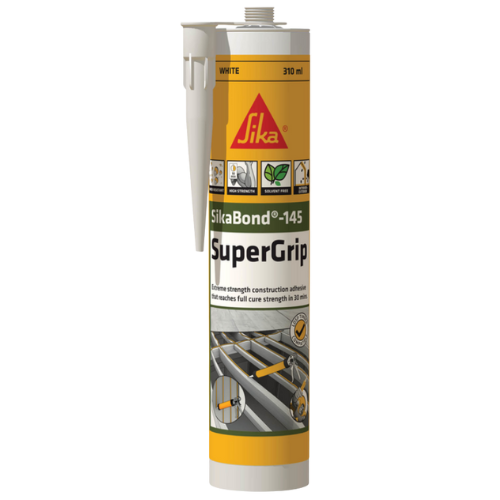 Description: SikaBond®-145 SuperGrip is suitable for use in construction and repair applications where a permanent strong bond is required between porous-nonporous surfaces. SikaBond®-145 SuperGrip is suitable for bonding most common construction materials such as: Wood, MDF, Concrete, Brick, Metal, Polystrene, Polyurethane foam, Some PVC, Marble, Granite, Ceramic, LOSP Timber.